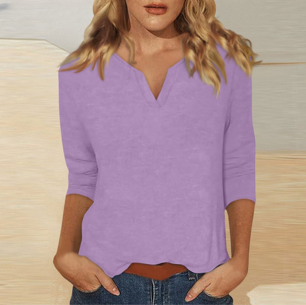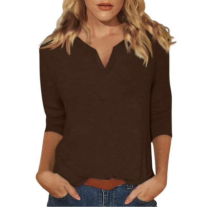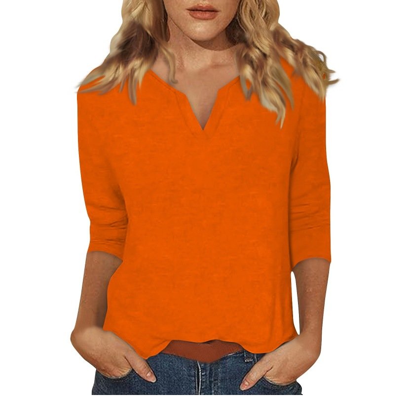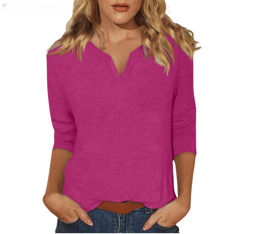 Three-quarter-sleeve Solid-color T-shirt Top