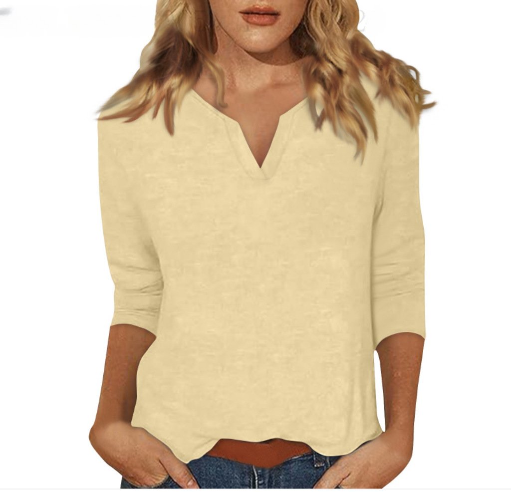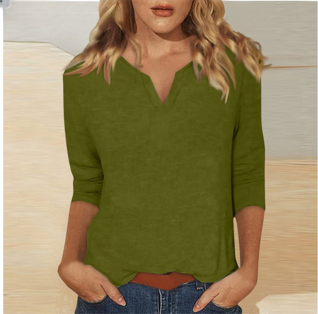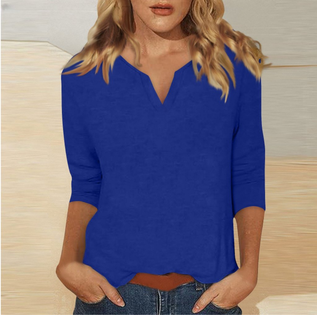Three-quarter-sleeve Solid-color T-shirt Top